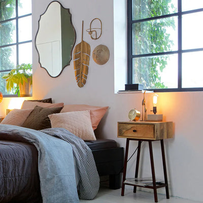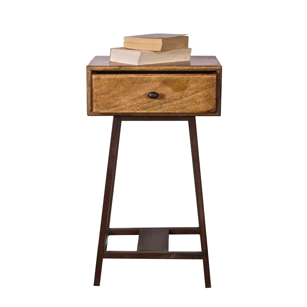 שידה המשלבת שני חומרים, ברזל ועץ,