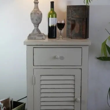 שידה מעוצבת בסגנון פרובנס בעלת דלת תריס ומגירה