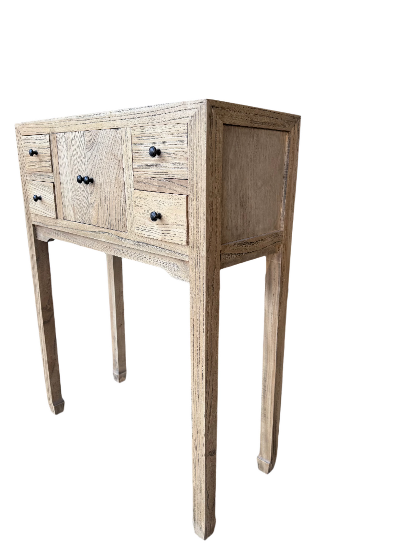 שידה מעץ אלון מלא בגוון טבעי, מנומר  בעלת דלתות ו4 מגירות