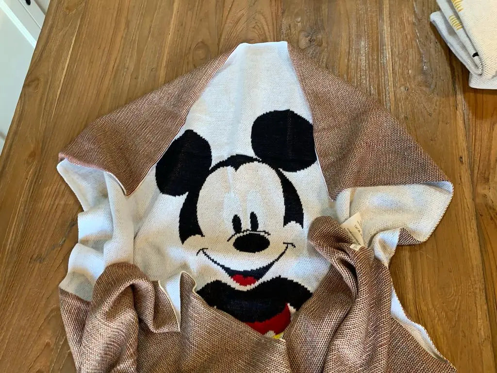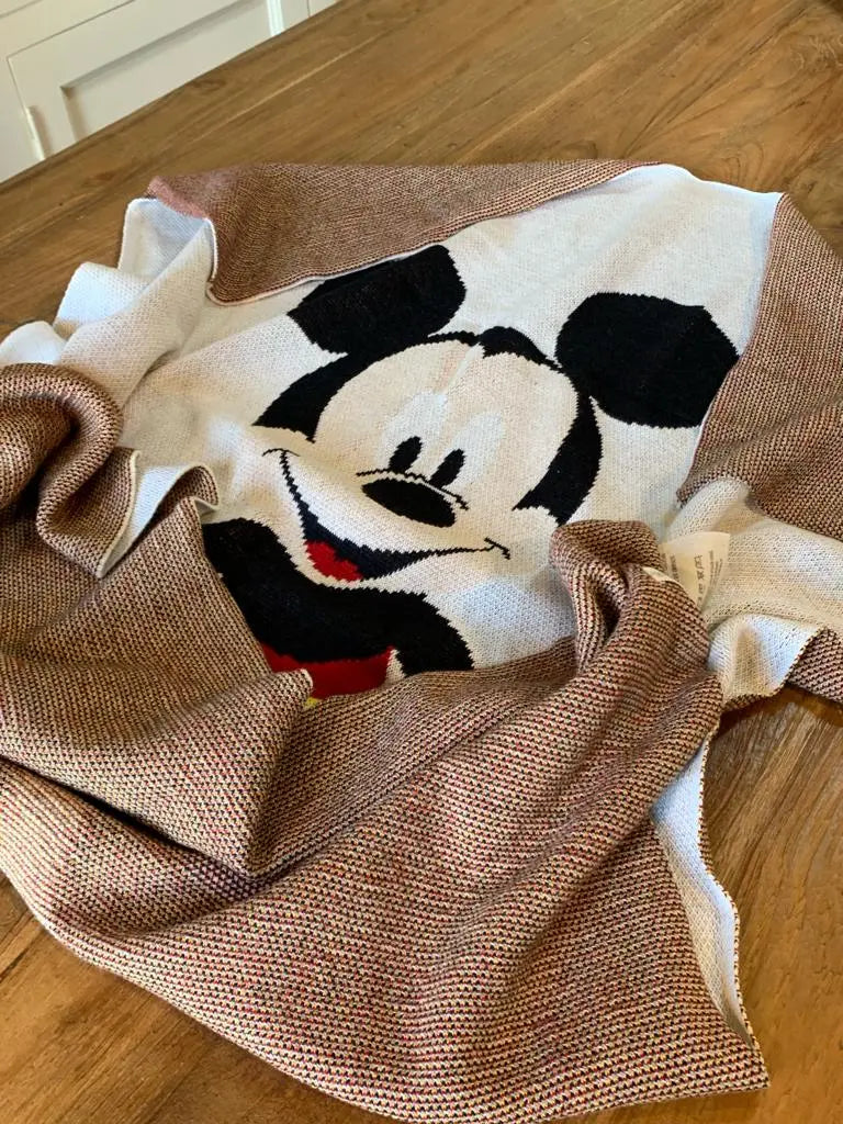 שמיכת תינוק אפורה מהממת ומפנקת עם מיקי מאוס ובחלקו הפנימי בד חלק