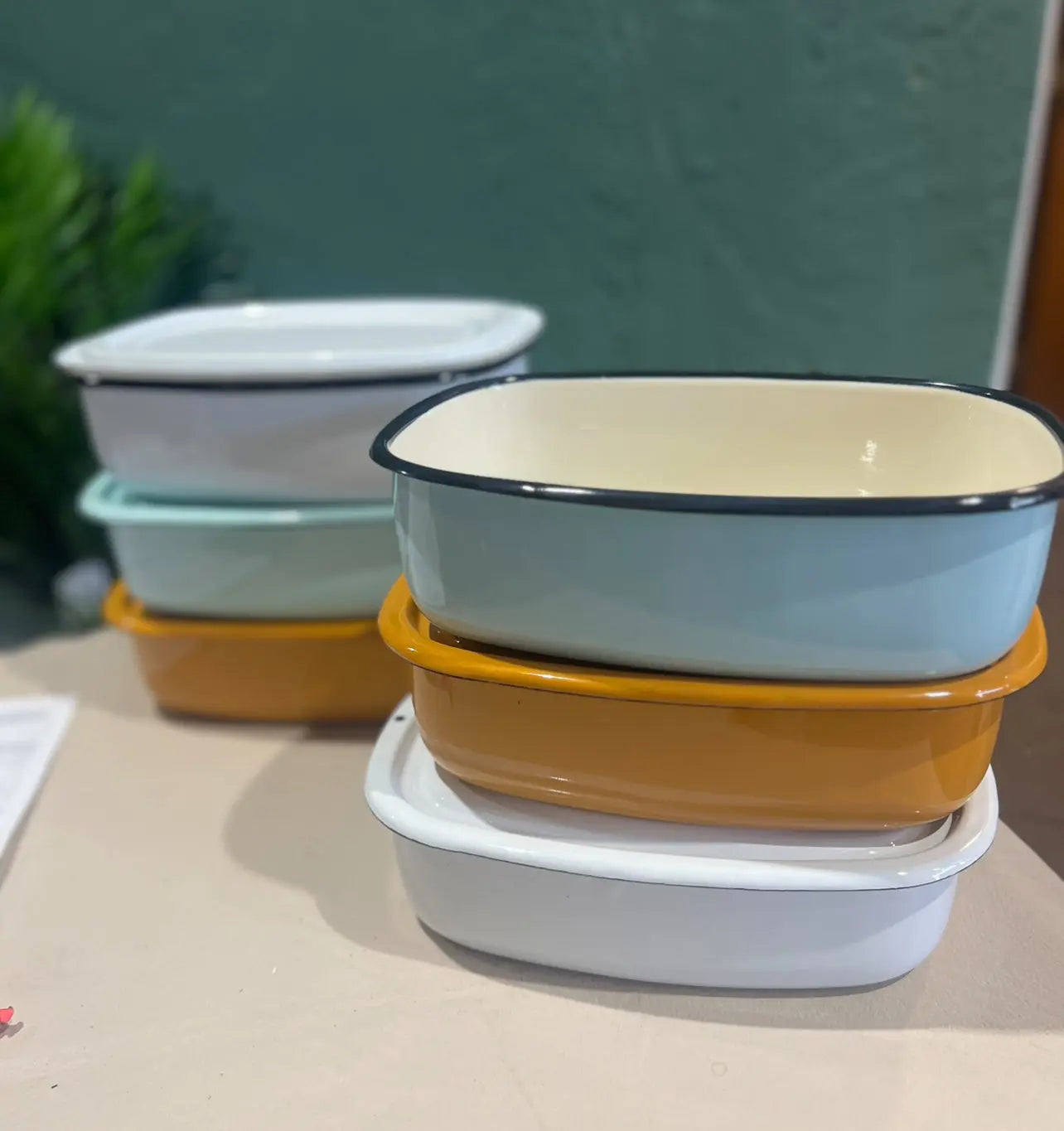 תבנית מלבנית אמייל צבעוני עם מכסה- אורך 24 ס"מ מכיל 1.5 ליטר