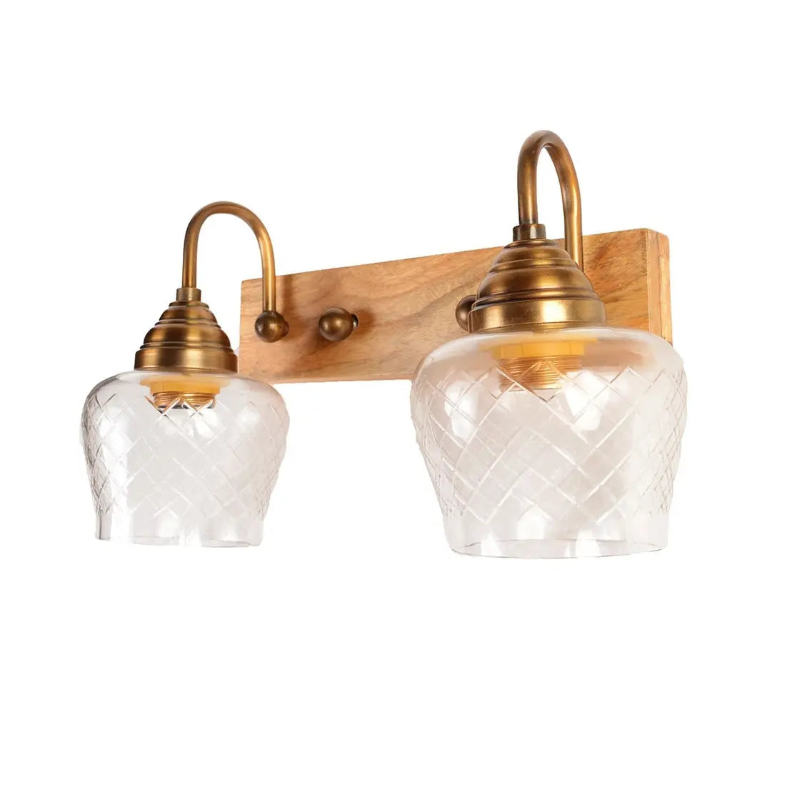של 2 גופי תאורה מזכוכית. הפס עשוי מעץ.