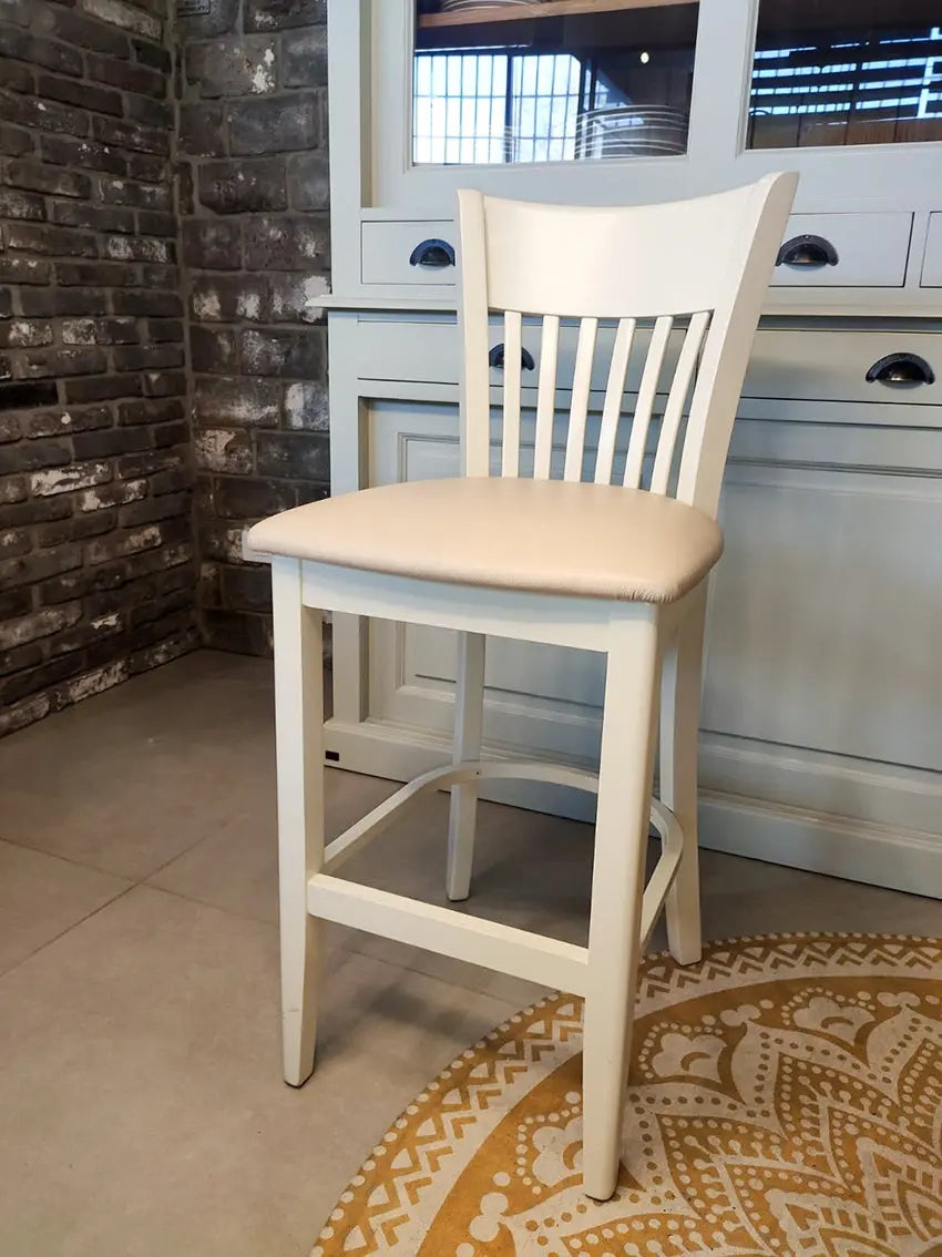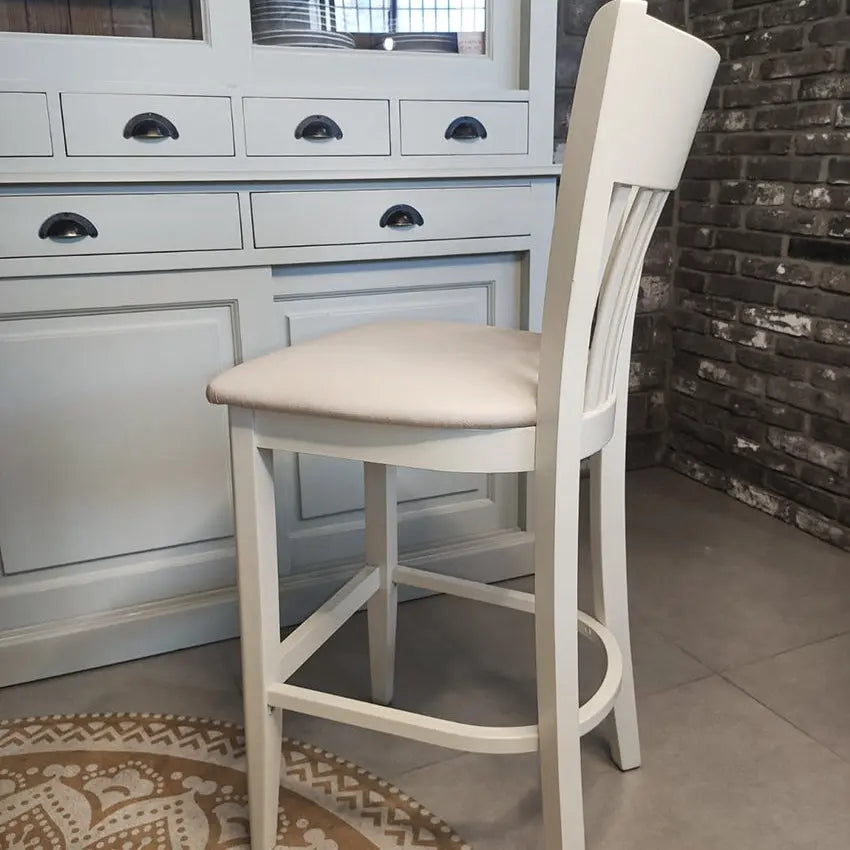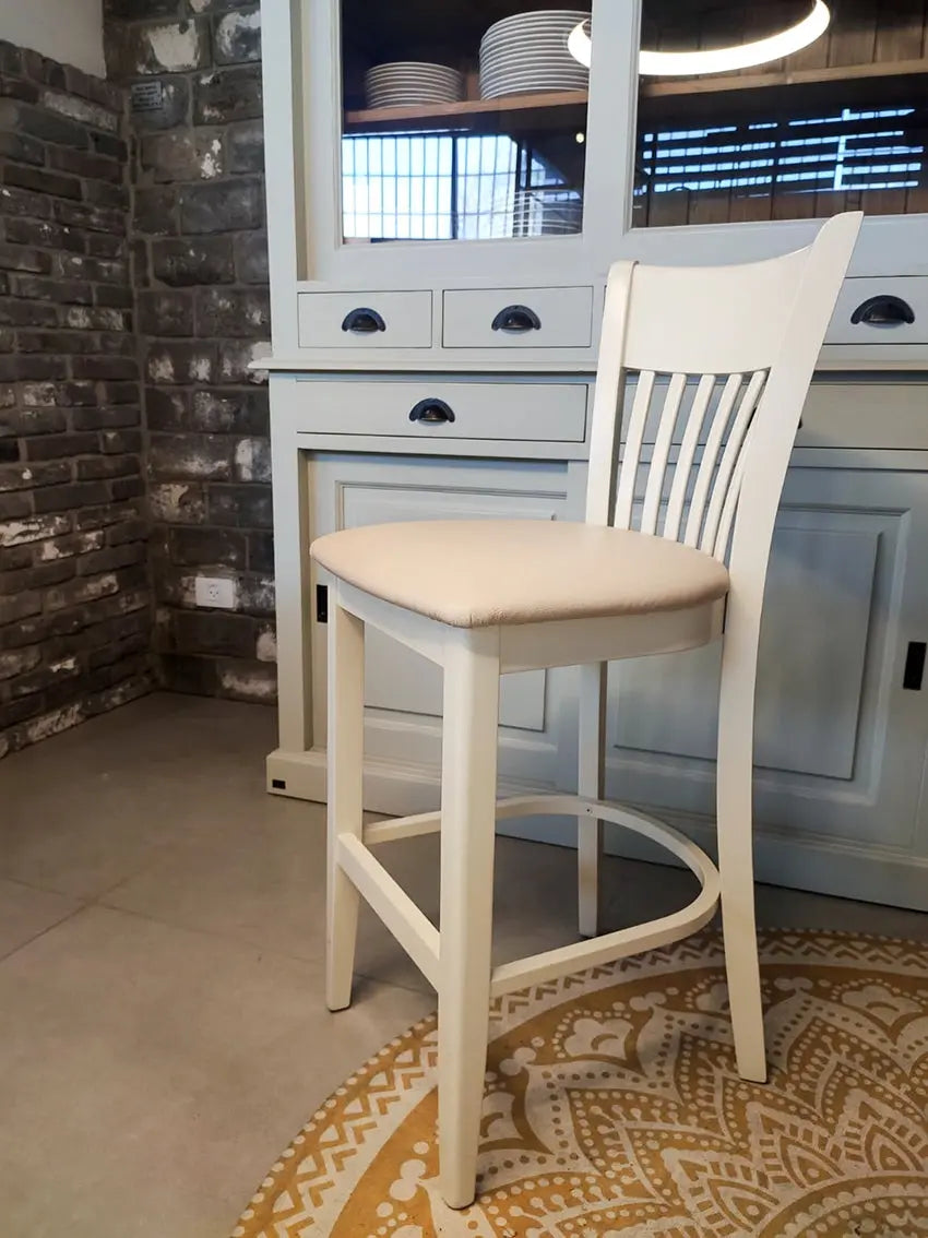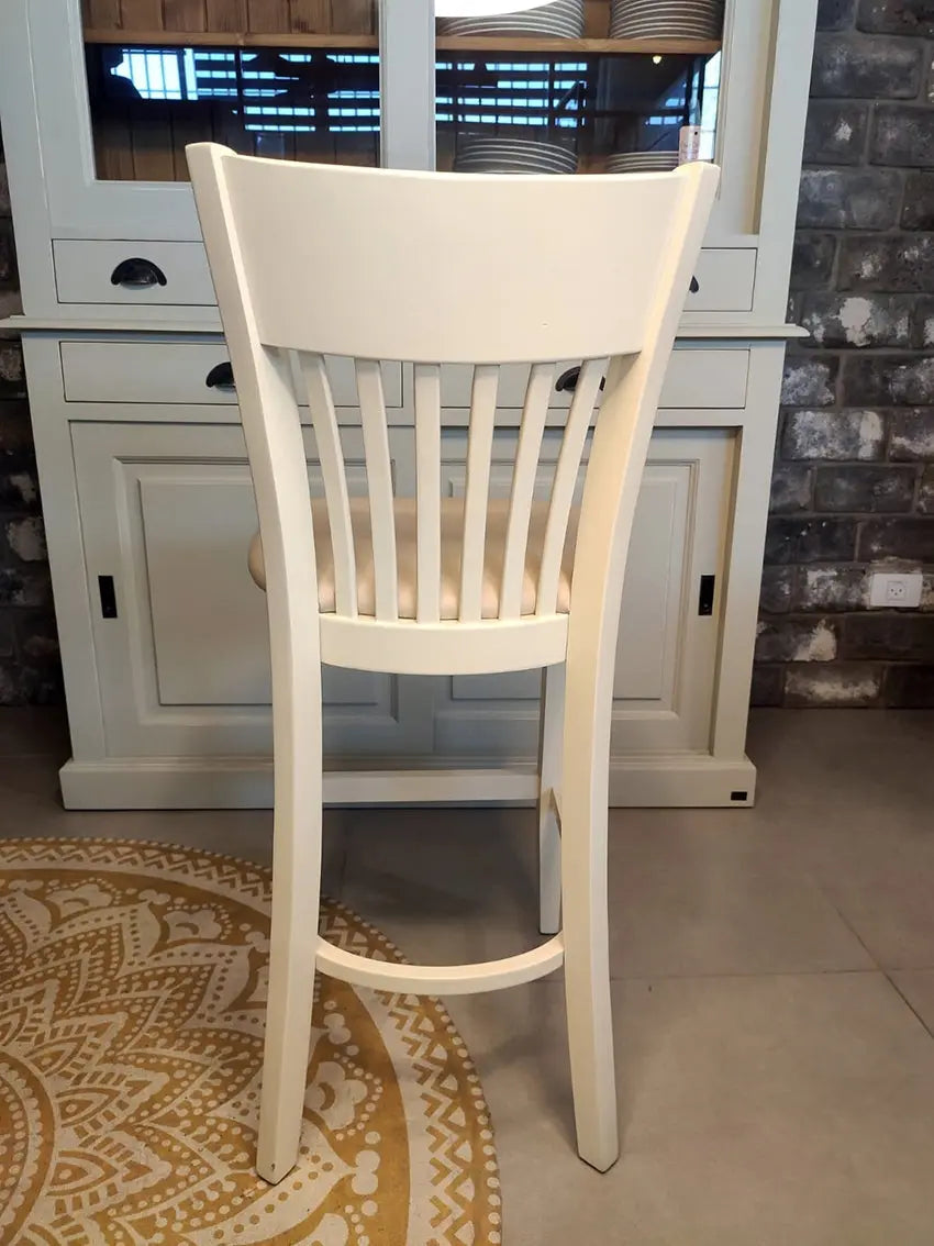 כסא בר מעץ בוק חזק ועמיד בגוון שמנת, מעוצב בסגנון כפרי.