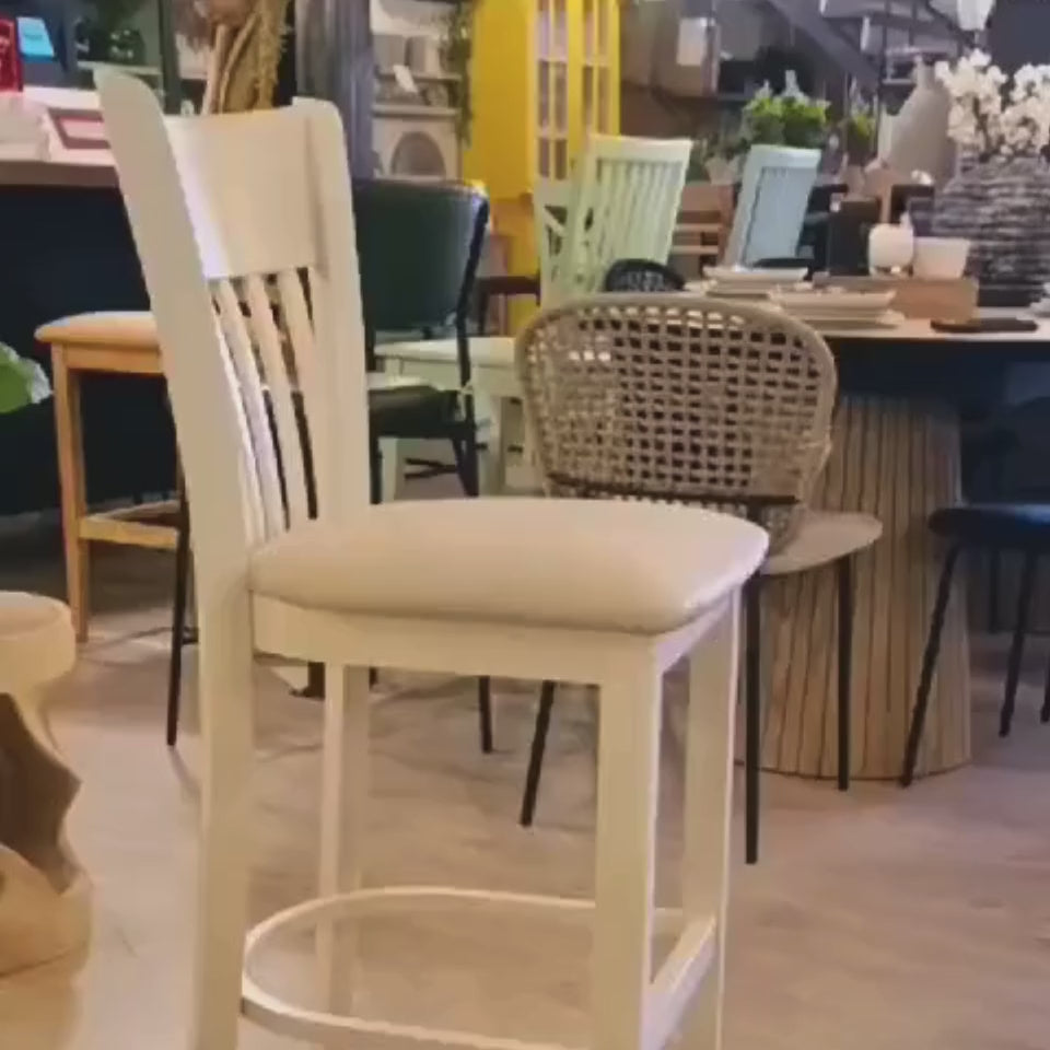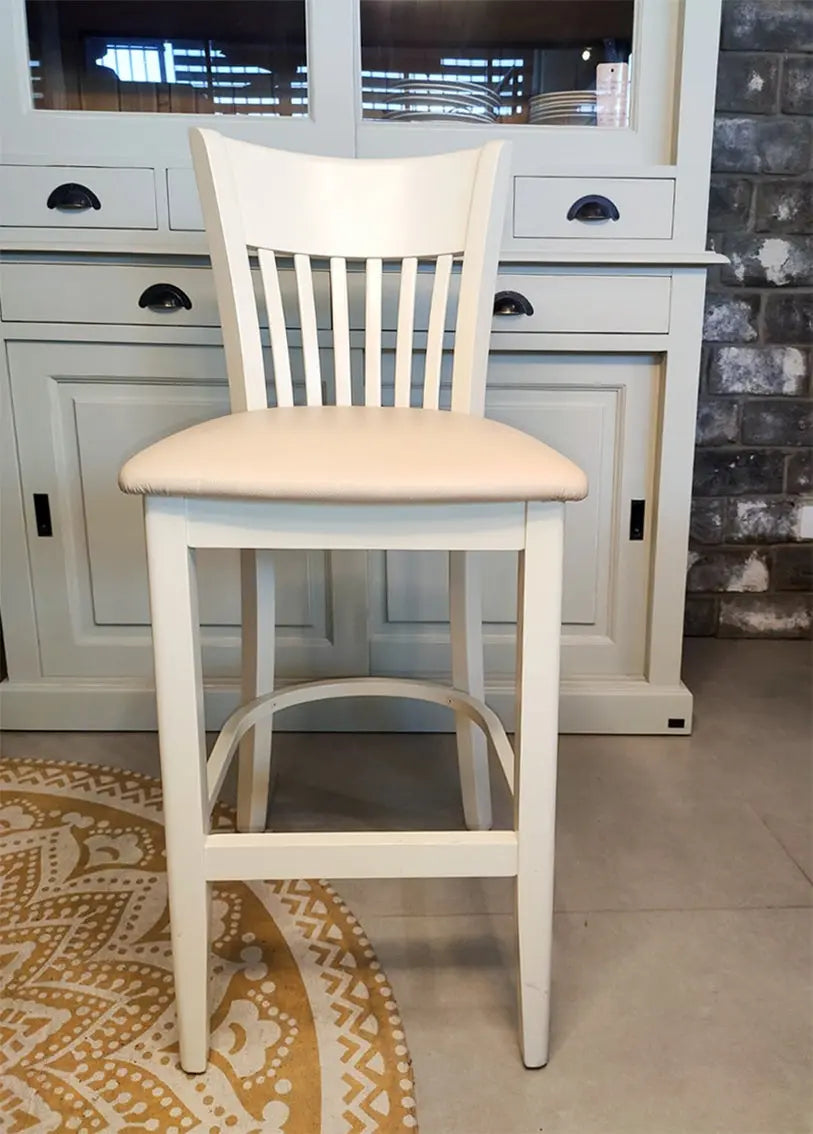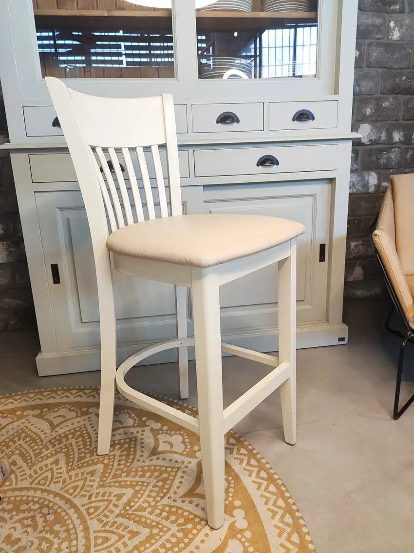 כסא בר מעץ בוק חזק ועמיד בגוון שמנת, מעוצב בסגנון כפרי.