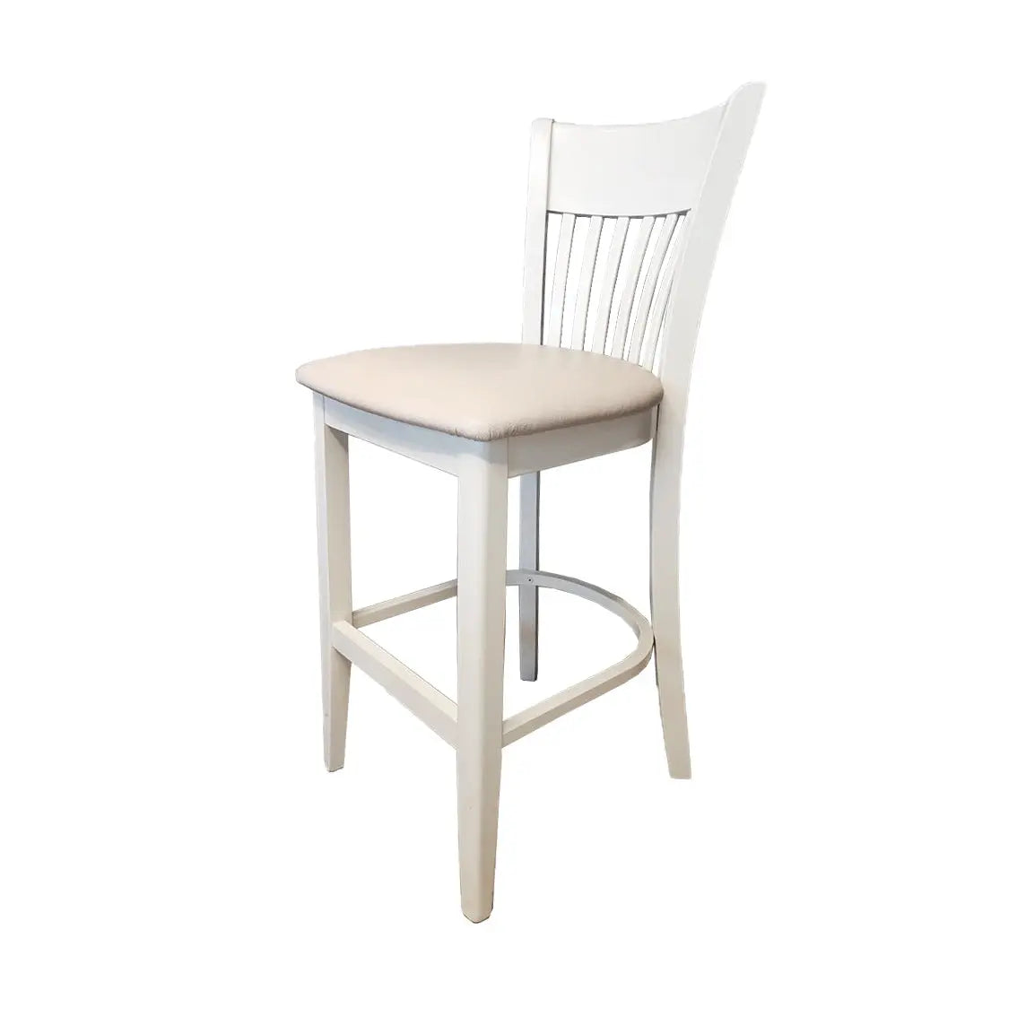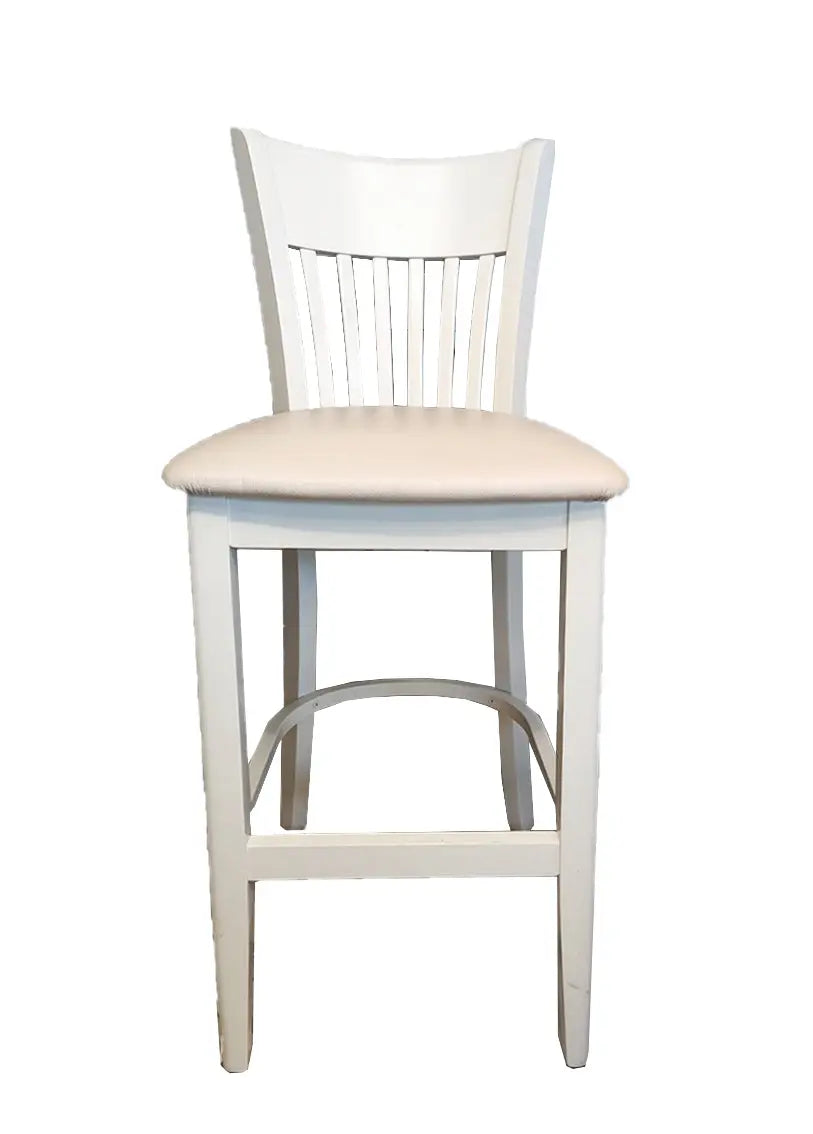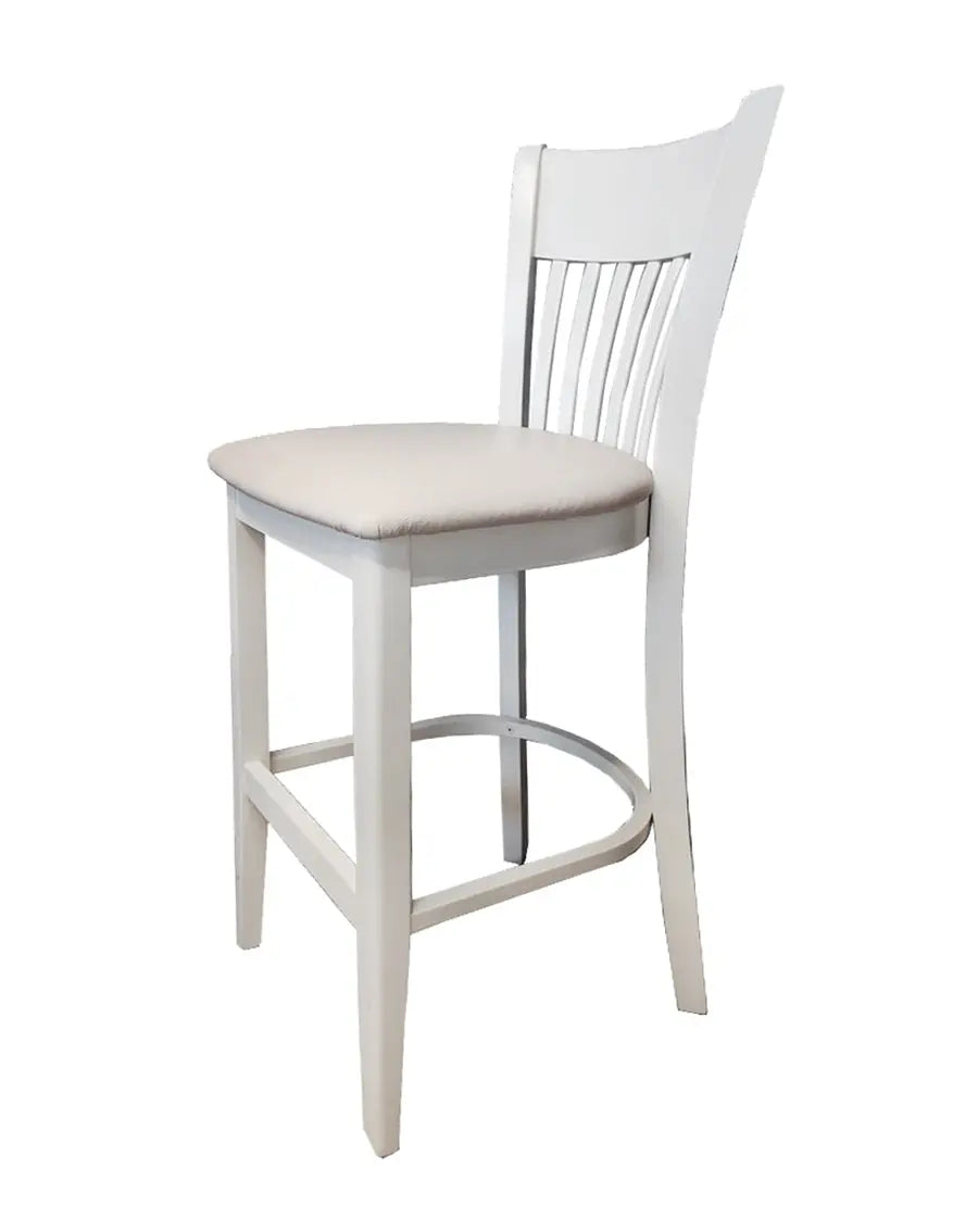 כסא בר בעל מושב מרופד בצבע שמנת ומשענת גב מעוגלת לנוחות מרבית.