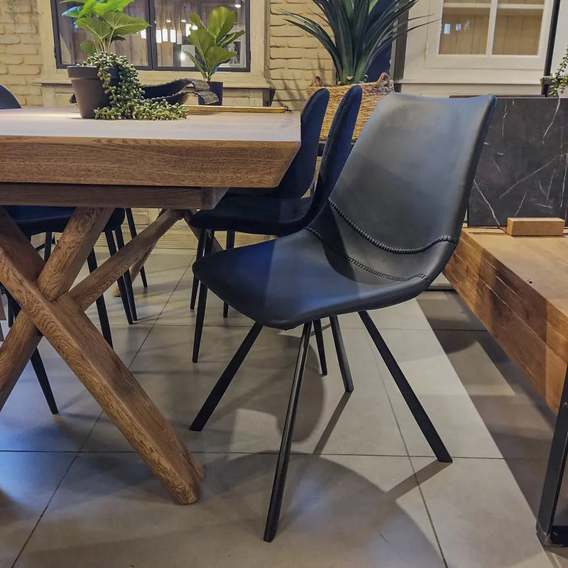 כסא אוכל מרופד בבד דמוי עור שחור עם רגלי ברזל