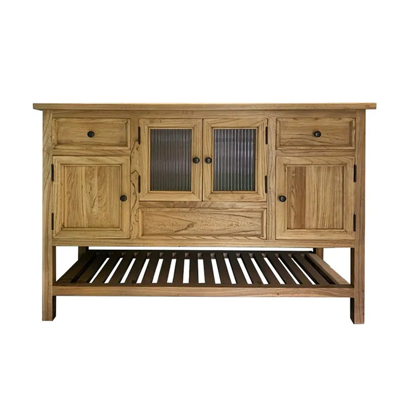 לשידה 3 מגירות ו וארבע דלתות מתוכן 2 דלתות עם זכוכית גלינה