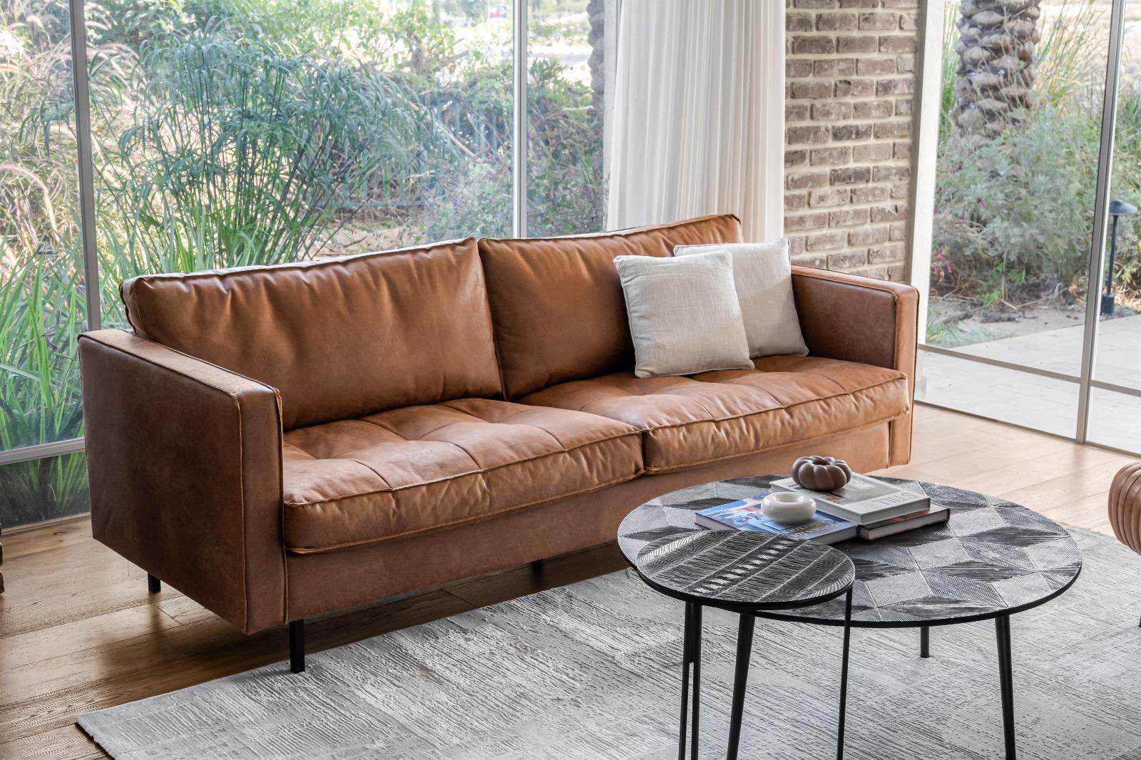 ספת תלת מושבית עשויה עור ממוחזר שילוב של 70% עור ממוחזר ו 30% פוליאסטר בעלת רגלי ברזל