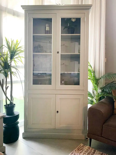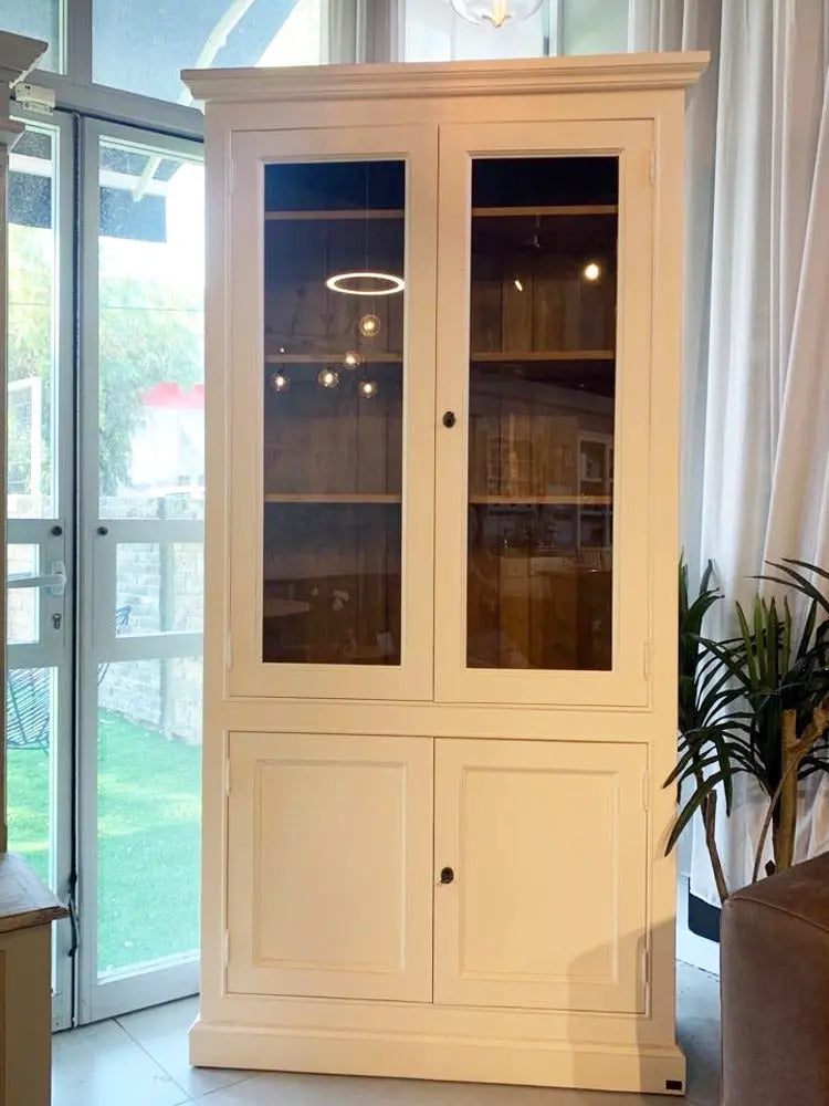 ויטרינה זכוכית יפיפייה מעץ אורן משובח, מעוצבת בסגנון צרפתי-כפרי.