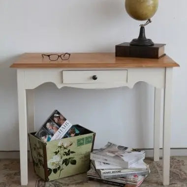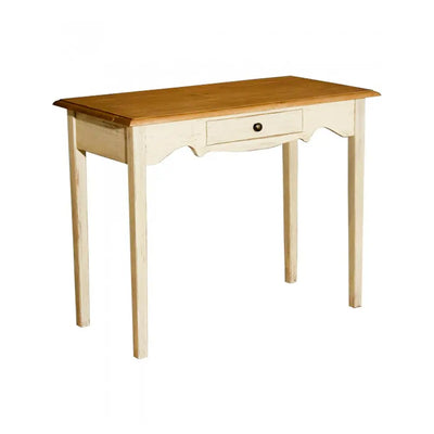 שולחן כתיבה צרפתי מעץ מלא בסגנון פרובאנס עשוי מעץ אורן פיני מלא בעל מגירה נשלפת אחת.