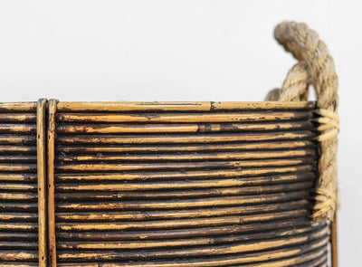 סל אחסון עשוי ראטן שזור עבודת יד,