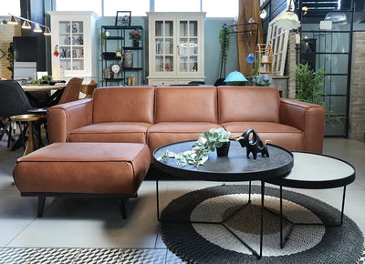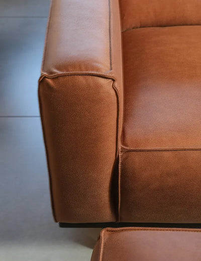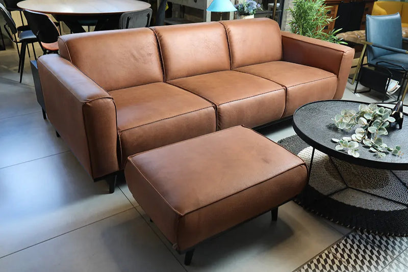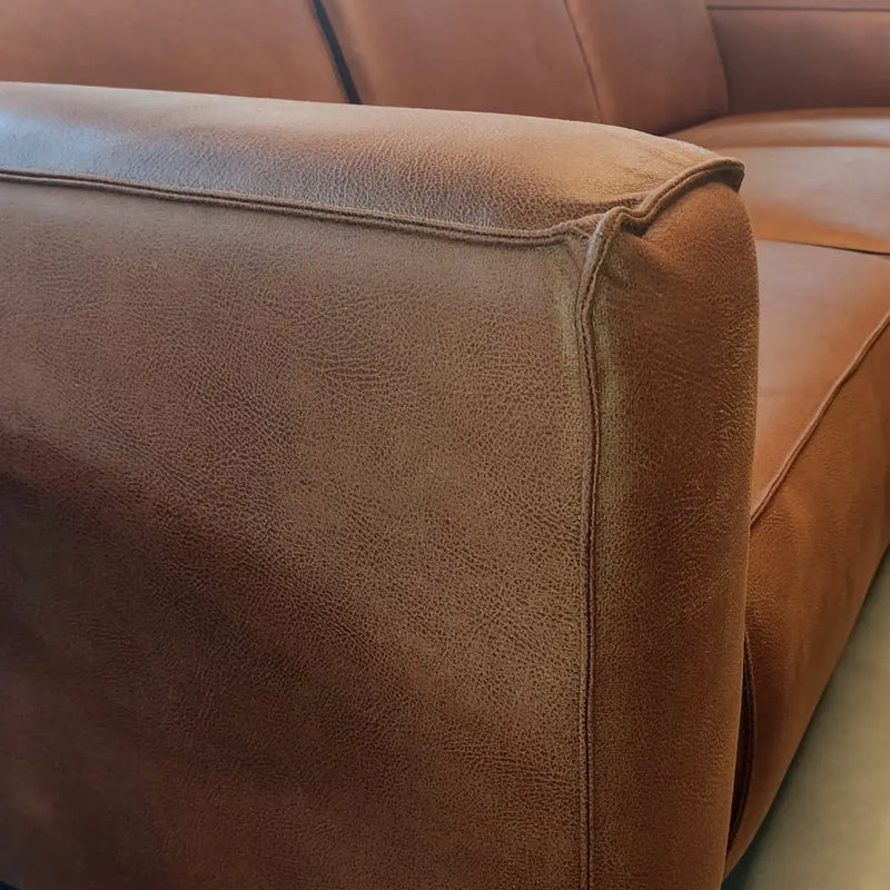 ספה מעוצבת במראה נקי ועכשוי מורכבת משילוב של 65% פוליאסטר- 35% עור ממוחזר